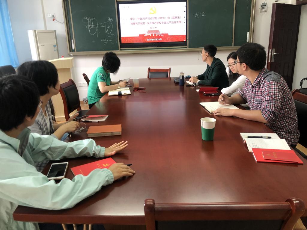 为增强广大教职工党风廉政建设的自觉性,进一步严守政治纪律和政治规矩,营造风清气正的政治生态环境,beat365官网各教工支部分别通过支部大会学习了王焰新校长5月10日讲授的题为《学习<中国共产党纪律处分条例>和<监察法> 开展警示教育 深入推进学校全面从严治党工作》的专题党课内容。