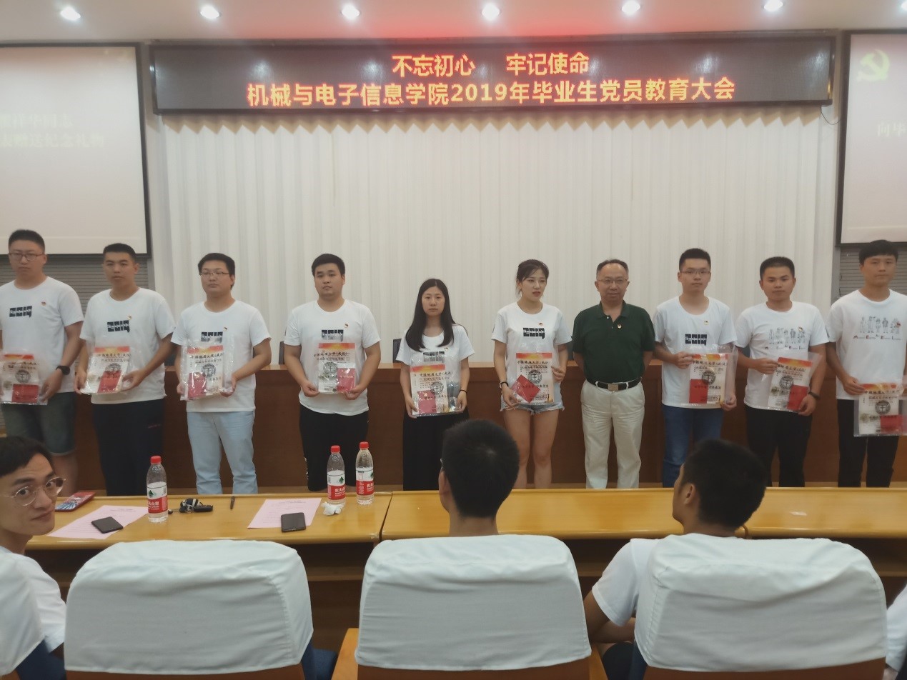 值得一提的是,在教育大会的最后一个环节,学院党委为每位毕业生党员精心准备了一份毕业纪念礼包,瞿祥华同志将纪念礼包赠送给毕业生党员代表。礼包有党徽、党章、每位党员专属的党员贺卡、致2019届毕业生党员的一封信、校徽以及一份党员组织关系转接温馨提示。