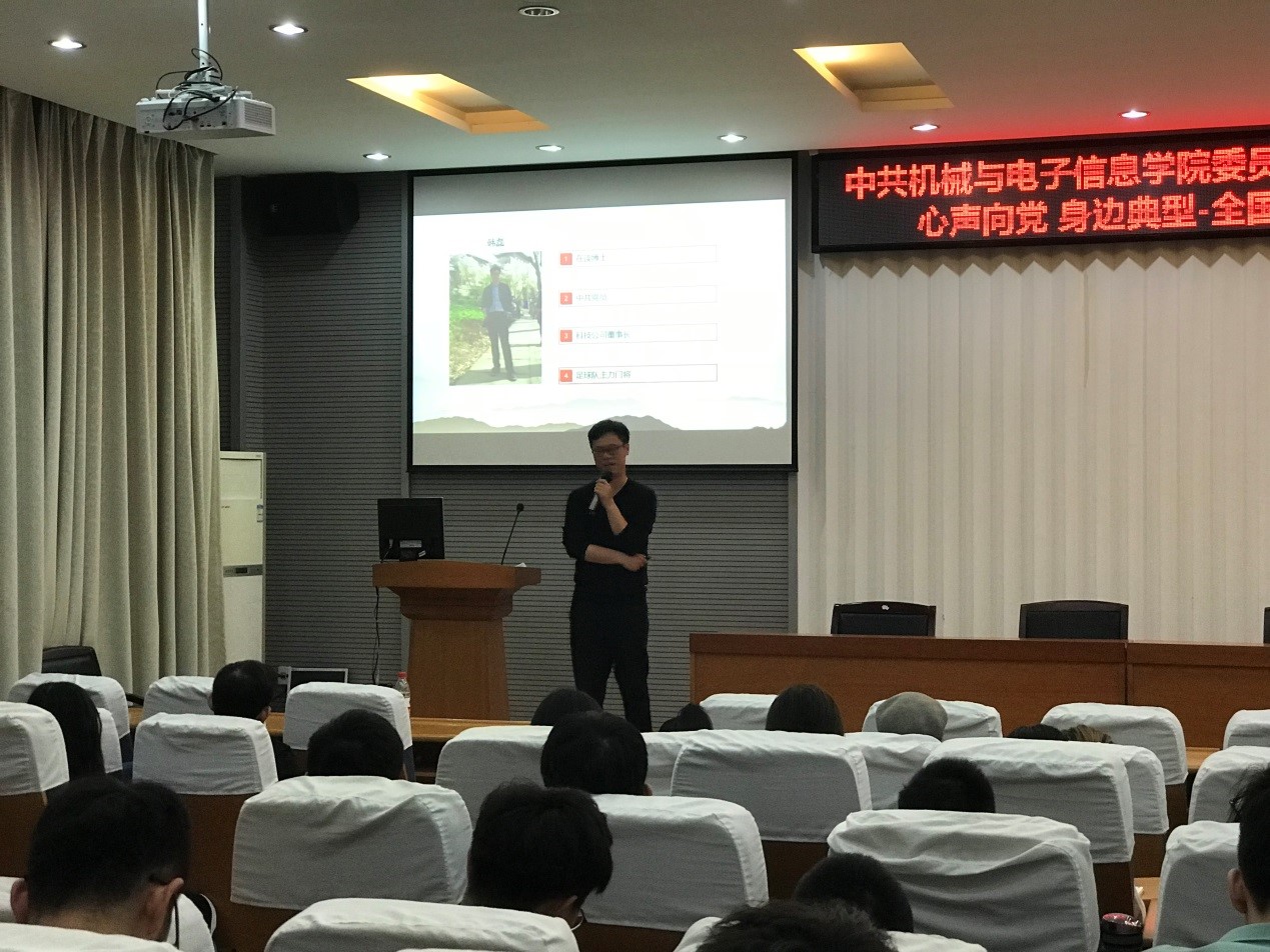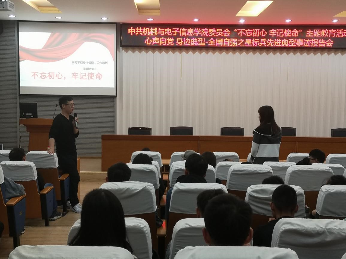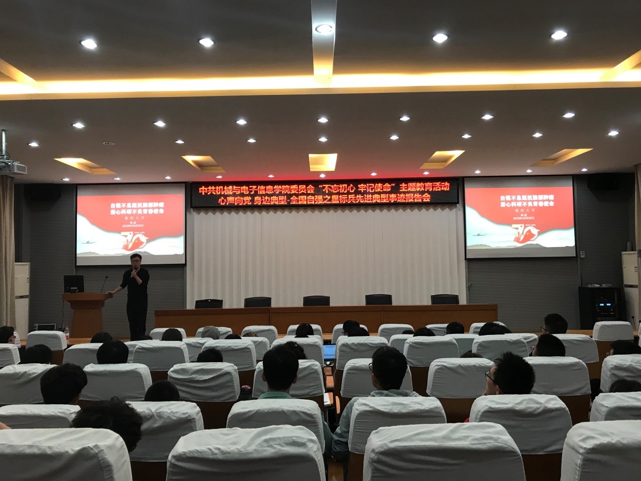 (通讯员 张晓庆)10月30日下午,中共beat365平台官方网站委员会“不忘初心,牢记使命”主题教育活动在教二楼301举行,本次活动主题为心声向党•身边典型-全国自强之星标兵先进典型事迹报告会。2018年全国自强之星标兵、beat365官网博士研究生党员韩磊担任主讲人,学院全体学生党员参加学习。