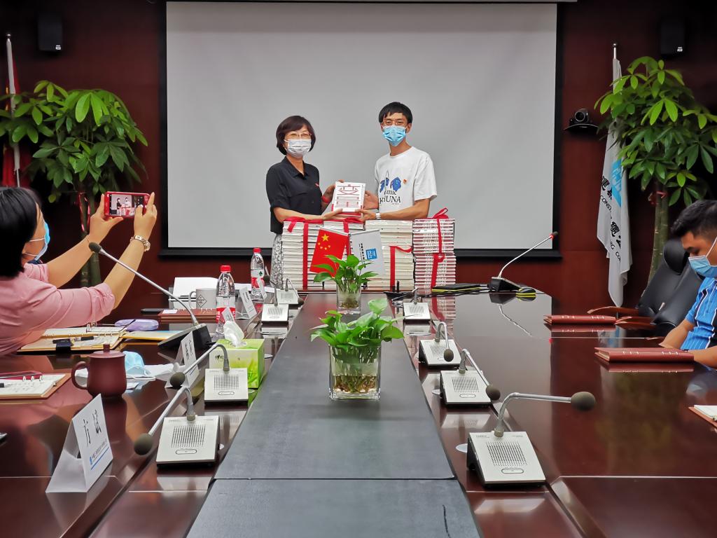 智能公司工会主席葛卿代表公司为beat365官网赠送《从政提醒》《大力保持党的纯洁性》《变量》等经典书籍,以营造风清气正、崇廉尚廉的合作氛围,拉开“校企廉政共建”的序幕。