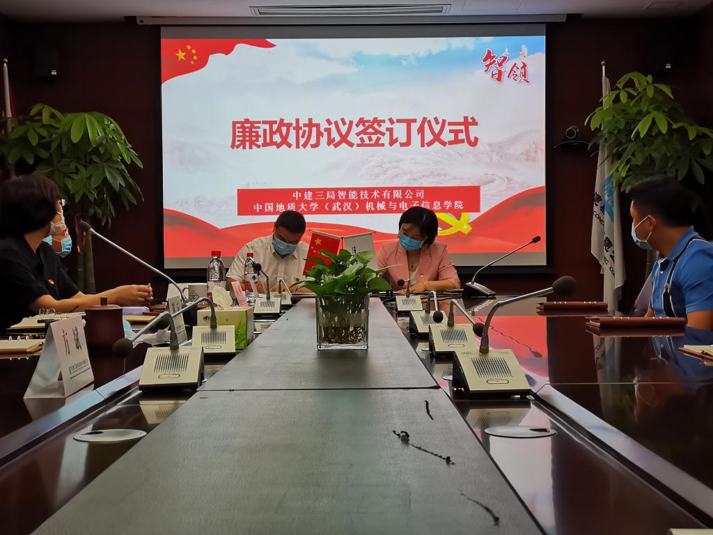 为进一步推动校企合作,加强beat365官网和企业在产学研合作中的廉政建设, 6月19日,应中建三局智能技术有限公司党总支书记陈应邀请,学院党委副书记、纪委书记于晓舟,团委书记杜育走访智能公司,并参加“颂清风 扬正气”云上朗读者活动。智能公司领导班子、部门负责人等32人参加交流活动。