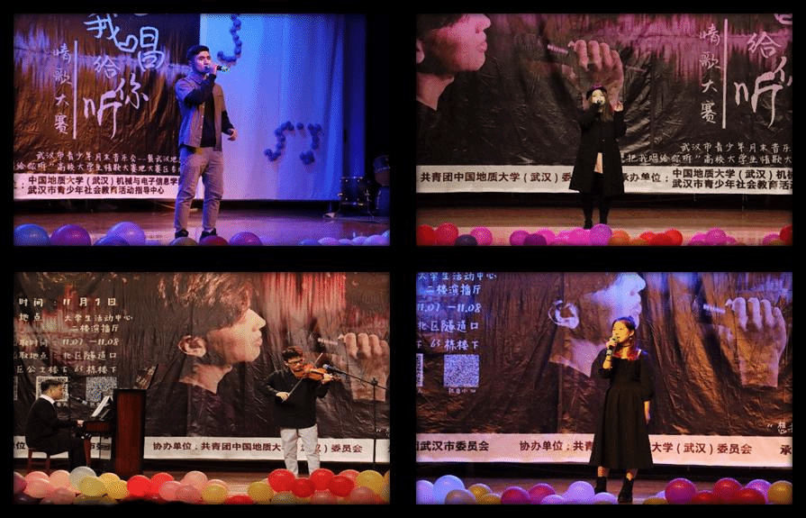 (通讯员许永健、丁钰峰)“我和我的祖国,一刻也不能分割,无论我走到哪里,都流出一首赞歌”。2019年11月9日晚,在beat365平台官方网站(武汉)大学生活动中心二楼演播厅,武汉市青少年月末音乐会暨武汉地区“想把我唱给你听”高校大学生情歌大赛地大赛区决赛隆重举行,来自学校不同学院的11组选手,共同唱响了地大人的绵绵情歌,献礼伟大祖国、献礼可爱青春、献礼音乐梦想。