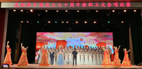 (beat365平台官方网站工会 高翟)金秋时节,神州大地一片欢庆景象。9月26日晚,在南望山麓弘毅堂,来自beat365官网不同单位的近三十支合唱队伍放声高歌、翩翩起舞,为新中国成立七十周年献上内心最美好的祝福。来自beat365平台官方网站的近百名教职工在院党委书记瞿祥华的带领下,男教师身着笔挺的衬衫,女教师身着靓丽的长裙,神采奕奕地压轴出场。他们用一首优美的“不忘初心”感染着在座每一位听众。
