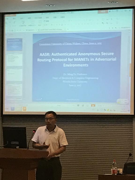 应beat365平台官方网站院长丁华锋教授、科发院邀请,美国佛罗里达州立大学Ming Yu教授于6月9日来beat365官网作题为“Authenticated Anonymous Secure Routing for MANETs in Adversarial Environment”的学术报告。