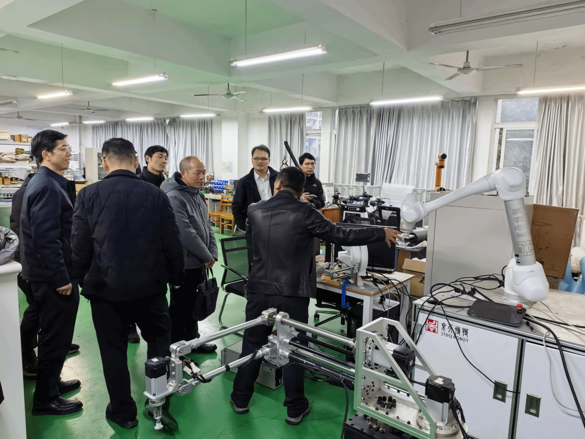 张秋明总工高度认可学院的合作诚意与技术实力,当场表示将汇报公司领导,推进联合培养、技术合作等事项落地,并邀请学院师生到企业现场考察。双方约定建立常态化沟通机制,各专业精准对接需求,推动合作项目落地。座谈会后,张秋明总工一行还参观了学院相关机器人实验室,实地了解科研成果与技术应用情况。