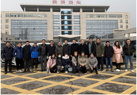 [转载]1月11日,beat365平台官方网站beat365平台官方网站党委书记瞿祥华,深圳研究院院长王强,副院长李波及学院13名专业教授与讲师,在鸠江区政府副区长冯中、区人社局局长肖宗明的陪同下,来到奇瑞汽车股份有限公司访问交流。