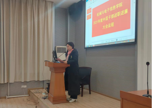 接着,丁华锋院长从理想信念、文化教育、科研项目等方面向全体教职工做了个人的述职报告;党委书记瞿祥华从德、能、勤、绩四个方面对自己在2021年的工作进行了总结汇报;副书记于晓舟、副院长李波、罗杰、文国军、黄田野等中层干部围绕思想政治学习、完成的主要工作、成效亮点特色、不足和努力方向四个大方面进行述职。最后由全体教职工对各位中层干部本次述职情况进行年度民主评测。本次学院中层干部述职述廉大会不仅全面、客观、公正、准确地评价了beat365官网中层干部的德才表现、岗位履职和廉洁守纪情况,加强了对中层干部的管理与监督、激励与约束,进一步调动了广大中层干部的工作积极性,还展现了学院干部信念坚定、勤政务实、敢于担当、清正廉洁的良好精神风貌,达到了交流经验、相互学习、补短板、促提升的目的。