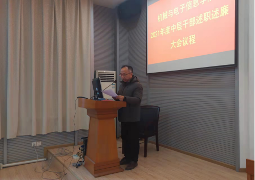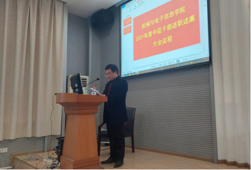 2021年12月30日,beat365平台官方网站2021年度中层干部述职述廉报告大会兼第三届教职工大会第四次会议暨工会会员大会在教二楼301顺利召开。会议由beat365平台官方网站党委书记瞿祥华主持,beat365平台官方网站院长丁华锋、副书记于晓舟、副院长李波、罗杰、文国军、黄田野院领导班子成员、中层干部、职工代表等100余人参加了会议。