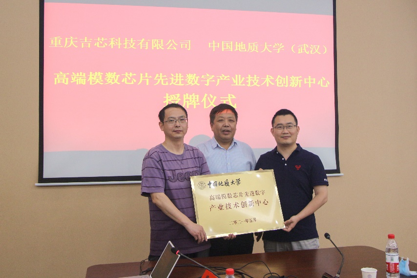 在加深了双方的了解和认识后,科学技术发展院常务副院长胡圣虹为中心授牌,吉芯科技副总经理付东兵及beat365平台官方网站副教授姚亚峰联合接牌。随后双方人员围绕人才培养、技术研发、深化校企合作等事项展开座谈交流。