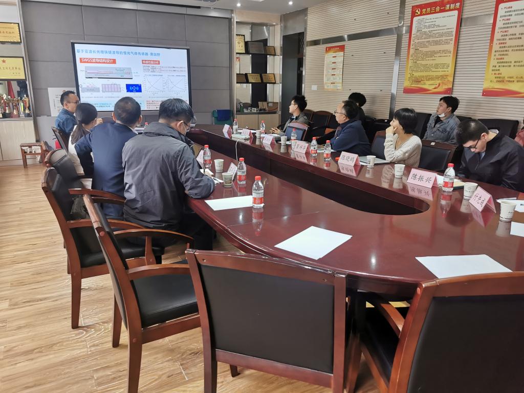会议由学院党委书记瞿祥华主持,各系教师代表首先介绍团队有关研究方向和进展。黄田野教授介绍特种光纤技术在气体传感器、光纤激光器、光纤通信系统中的应用;郝国成老师介绍地质灾害监测和油气资源勘探相关仪器开发;付先成老师介绍嵌入式显示器产品开发;陈晓鹂老师介绍产品结构和外观设计典型案例。接着熊友辉董事长结合老师们汇报的研究方向,介绍了四方光电现有及即将开发的项目,希望在气体传感器及气体分析器领域进一步开拓产学研合作。