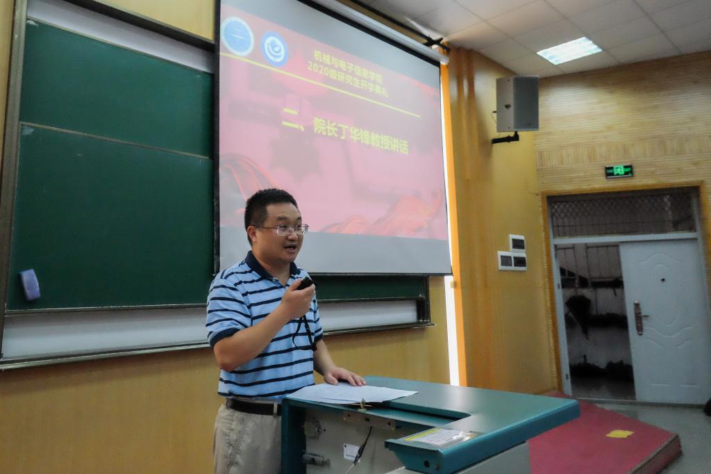 院长丁华锋教授致辞,他代表学院向2020级研究生表示热烈欢迎。丁华锋对同学们提出了几点要求:一是要坚定信念,立志成才。希望同学们能自主学习,做到学习进步,思想更要进步,树立正确的人生观、世界观、价值观。二是要坚持学术诚信,坚守学术道德,要尊重他人的学术成果。三是要加强与导师、与同学之间的交流,通过师生间的交流互动开阔科研思维。四是要培养科研素养,掌握科研方法。科研之路道阻且长,需要不断探索,勇于攀登,要在科研过程中积累经验,提高自己的科研能力。