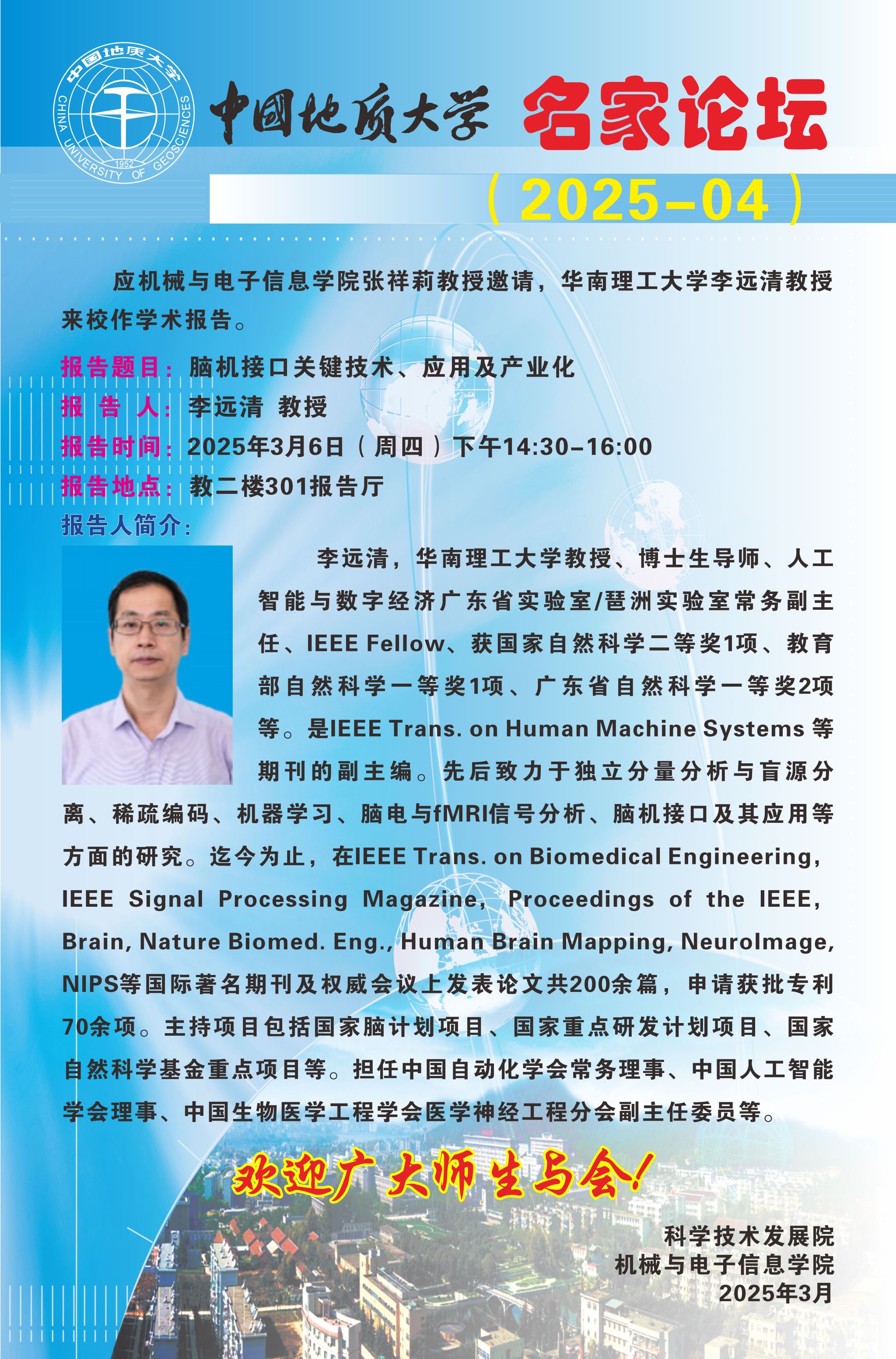 【3月6日】机电讲坛(2025-1):华南理工大学教授李远清来beat365官网作学术报告