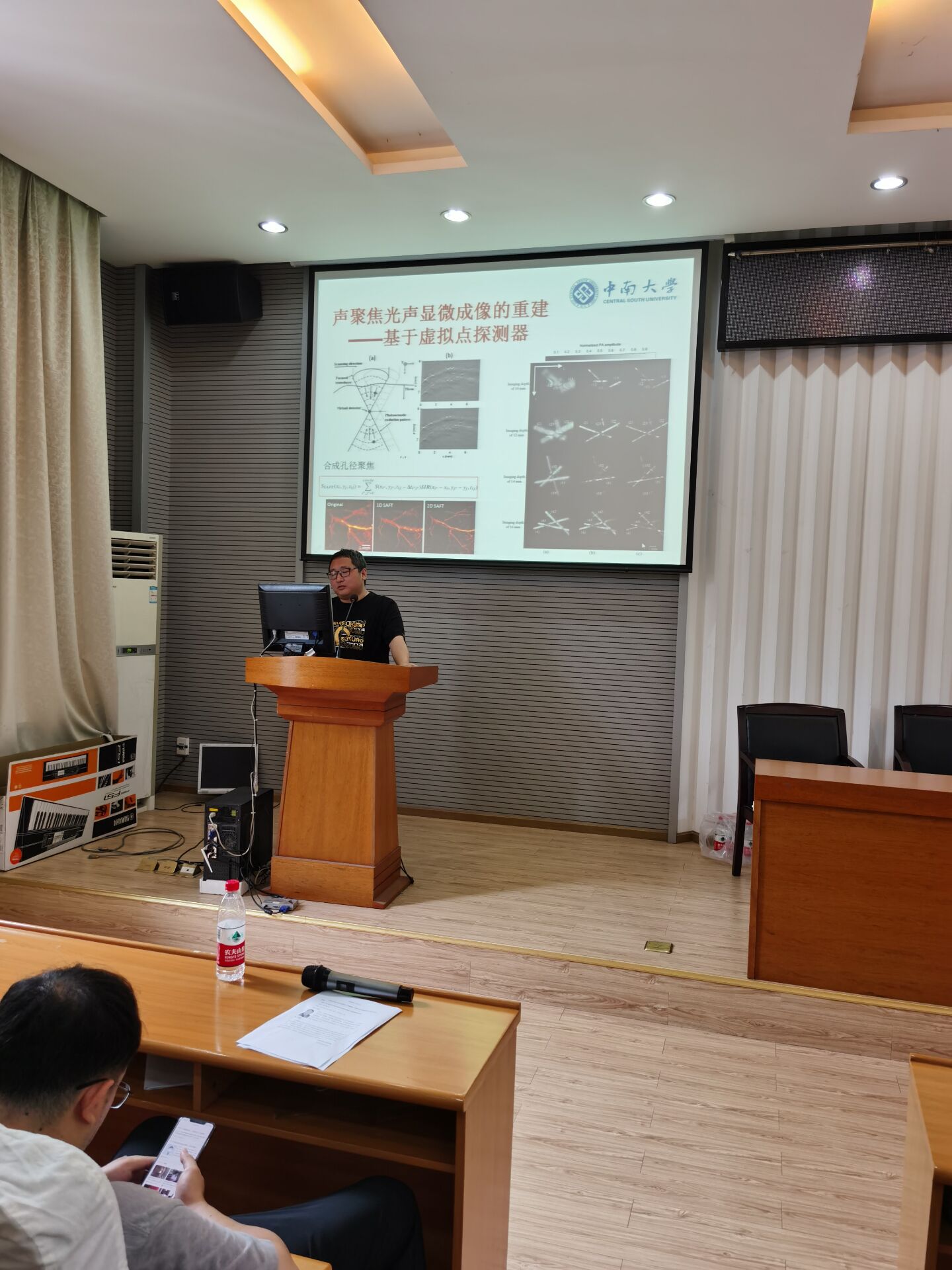 6月26日,中南大学王波副教授应邀来beat365官网,在教二楼301会议室进行了《基于换能器声场特性的光声层析成像及内窥成像算法研究》的专题学术报告。报告会由beat365官网宋潮龙教授主持,学院机械系、电子信息系等多位老师和70余名研究生参加了本次报告会。
