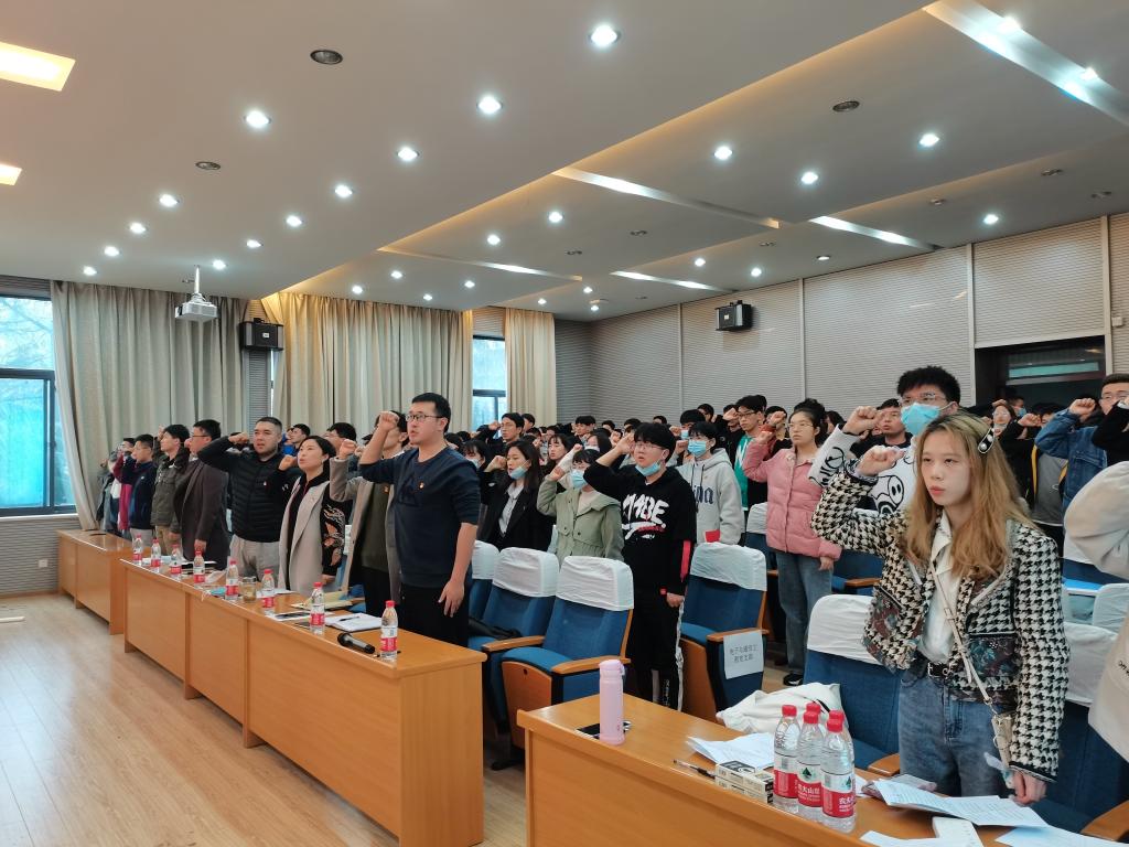 会议伊始,在王雪薇领誓下,全体党员面对党旗,举起右拳,重温入党誓词,铿锵有力的宣誓声响彻整个会场。汇报交流前,王雪薇就答辩规则向与会人员作了说明。随后,各学生党支部书记围绕“日常工作开展情况、对标‘七个有力’建设情况、支部特色活动创新情况、支部引领作用发挥情况”等各方面进行了全面介绍。其中,电信专业第一本科生党支部通过党团班一体化建设,切实提升服务同学水平;电信专业第二本科生党支部通过录制特色视频,有效提升党支部影响力;通信工程本科生党支部通过驻班党员和助理班主任合署工作制度,引领低年级同学积极向党组织靠拢……清晰的工作思路,流畅的答辩展示赢得了与会人员的阵阵掌声。