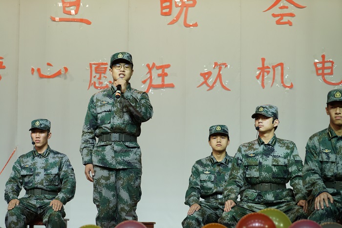 一曲由笛箫社合奏《大鱼》的旋律悠扬地响起,电影《大鱼海棠》中的情节仿佛历历在目。恰逢圣诞节,在之前情歌大赛中表现优异的刘阳、王人婧、傅靖鹏三位选手则带来歌曲串烧《圣诞结》,为晚会增添了一份暖意。随后,由刘凯等国防生为大家表演的话剧《忠诚》将现场气氛推向高潮,通过讲述国防生大比拼等故事,诠释了他们对忠诚的理解,展现了地大国防生永远忠诚于祖国的爱国情怀。刘健康、陈日升带来吉他弹唱《一颗会开花的树》。学工组老师为同学们表演儿歌串烧《金色童年》,一首首经典曲目串烧表演让同学们仿佛回到童年生活的无忧无虑,让人情不自禁地跟着哼唱起来。第二轮的微信抽奖环节后,丁腾飞老师为在中国教育机器人大赛斩获佳绩的同学颁奖。
