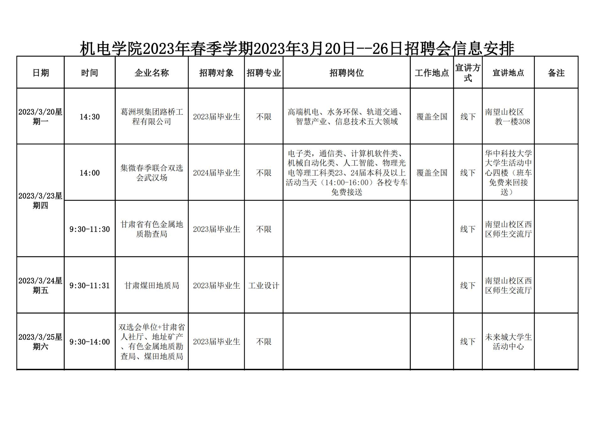 【毕业生·2023年3月13日--18日招聘会信息】beat365平台官方网站2023年春季学期2023年3月13日--18日招聘会信息安排