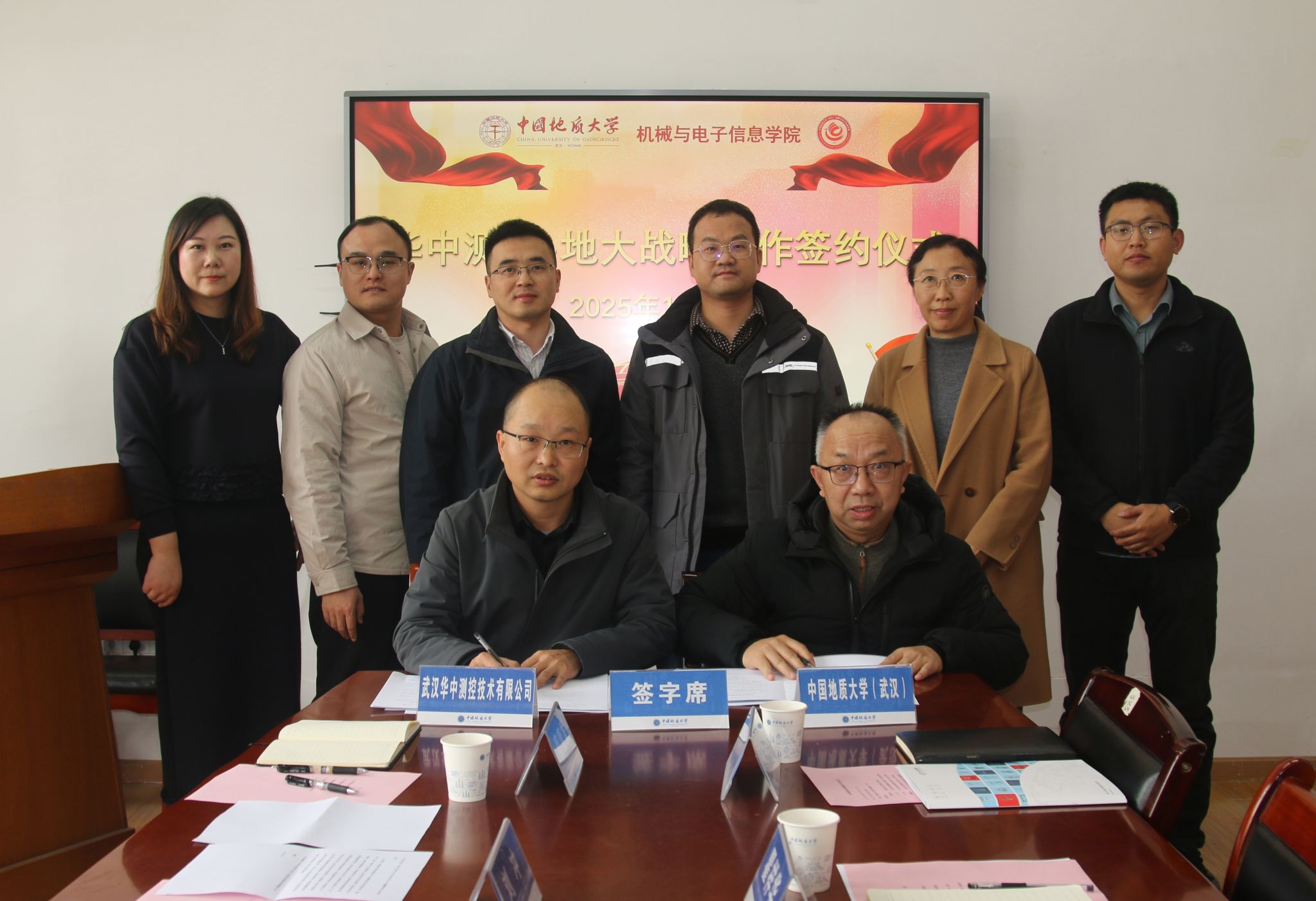 在双方代表的共同见证下,瞿祥华书记与刘冲副总经理正式签署战略合作协议,路桂英与刘冲副总经理签署技术开发合同,此举标志着地大beat365平台官方网站与华中测控的合作迈入实质性阶段。